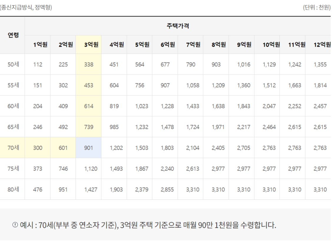 주택연금의 지급은 부부 중 어리신 분의 나이가 기준이 됩니다.